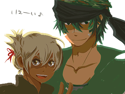 某音ゲーの緑の人というリクエストを受信したので個人的一押しの褐色の子と一緒に描いてみました。